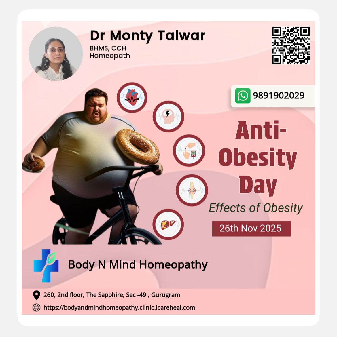 Treat obesity with healthy diet, exercise and homeopathy. Body N Mind Homoeopathy. Dr Monty Talwar. Gurugram